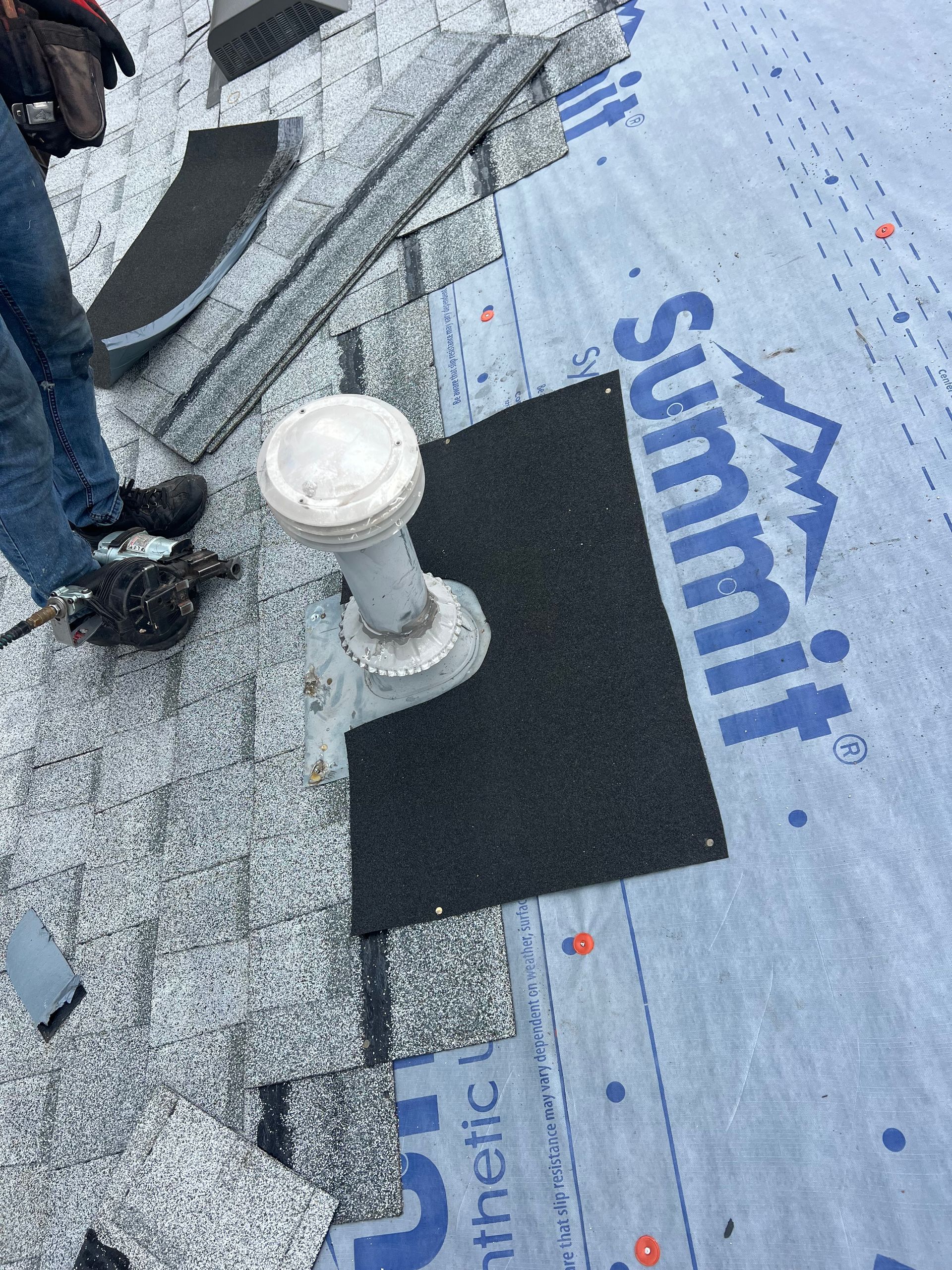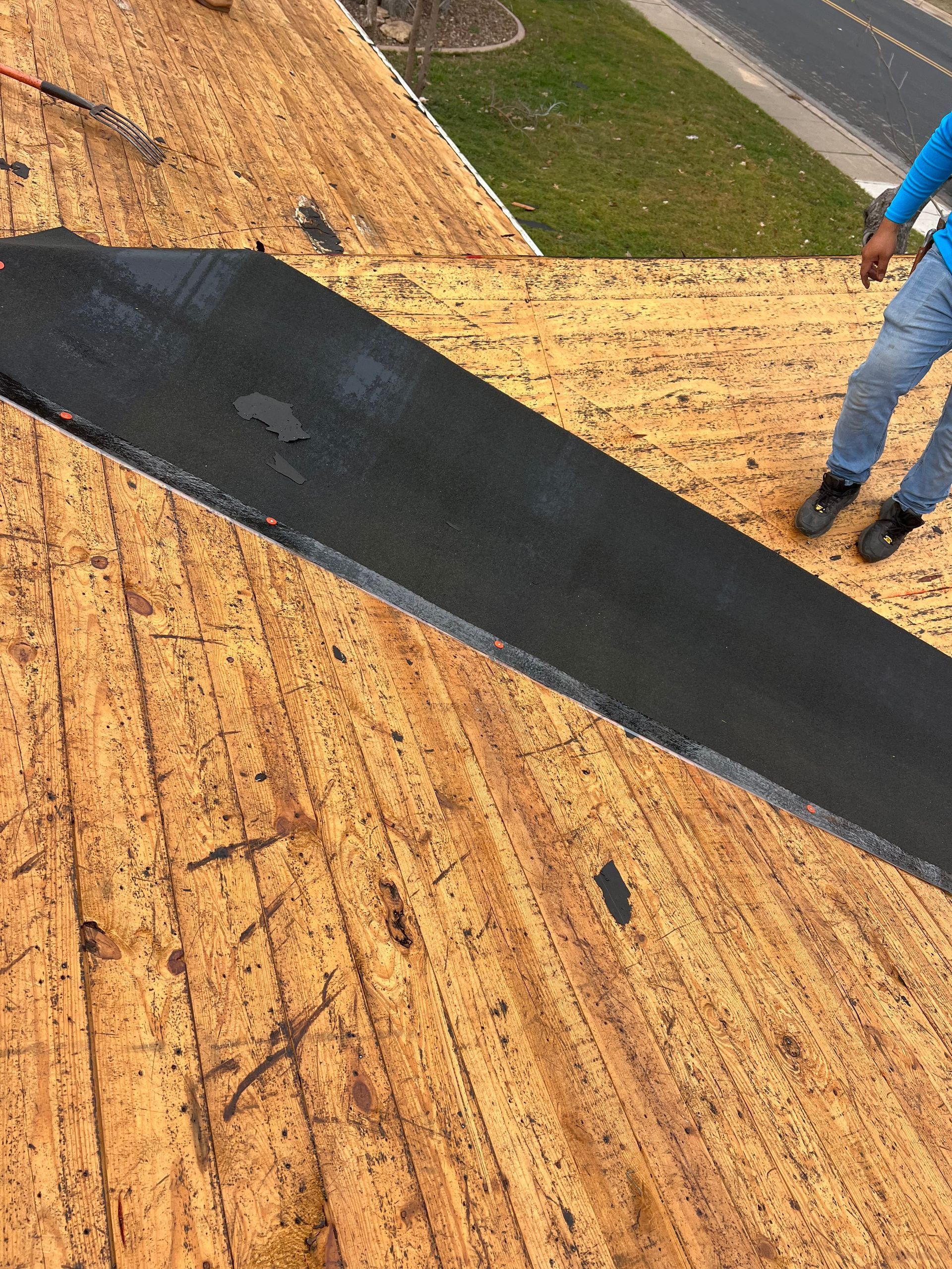 First we remove all the old shingles and underlayment. Old Static vents, Ridge vents, Pipe flashings etc. We check for rotted wood and or decking and replace as necessary. prepare roof surface and install new Synthetic Underlayment. (No Longer using the old Black Tar Paper). We then Install a rubberized Material known as "Ice and Water Shield" in all valleys and around all roof penetrations. We replace all valley metal and add a 2"x2" painted metal drip edge. The starter strips are then installed. Now properly prepped the shingling process begins. Vents are re-installed. Old rubber pipe flashings are upgraded to lifetime lead flashings, vents are replaced with new vents. we walk the roof and reseal all visible nail fasteners and blow off the roof. Blow out the gutters and cut limbs back if too close to the new shingles. We remove the ground tarps, and magnet sweep the house perimeter for nails. Many average size homes can be completed in 1 day.